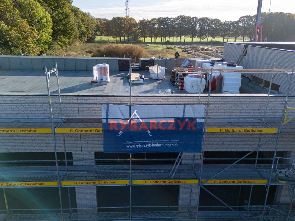 Herstellung der Dachabdichtung als Grundlage für eine extensive Dachbegrünung